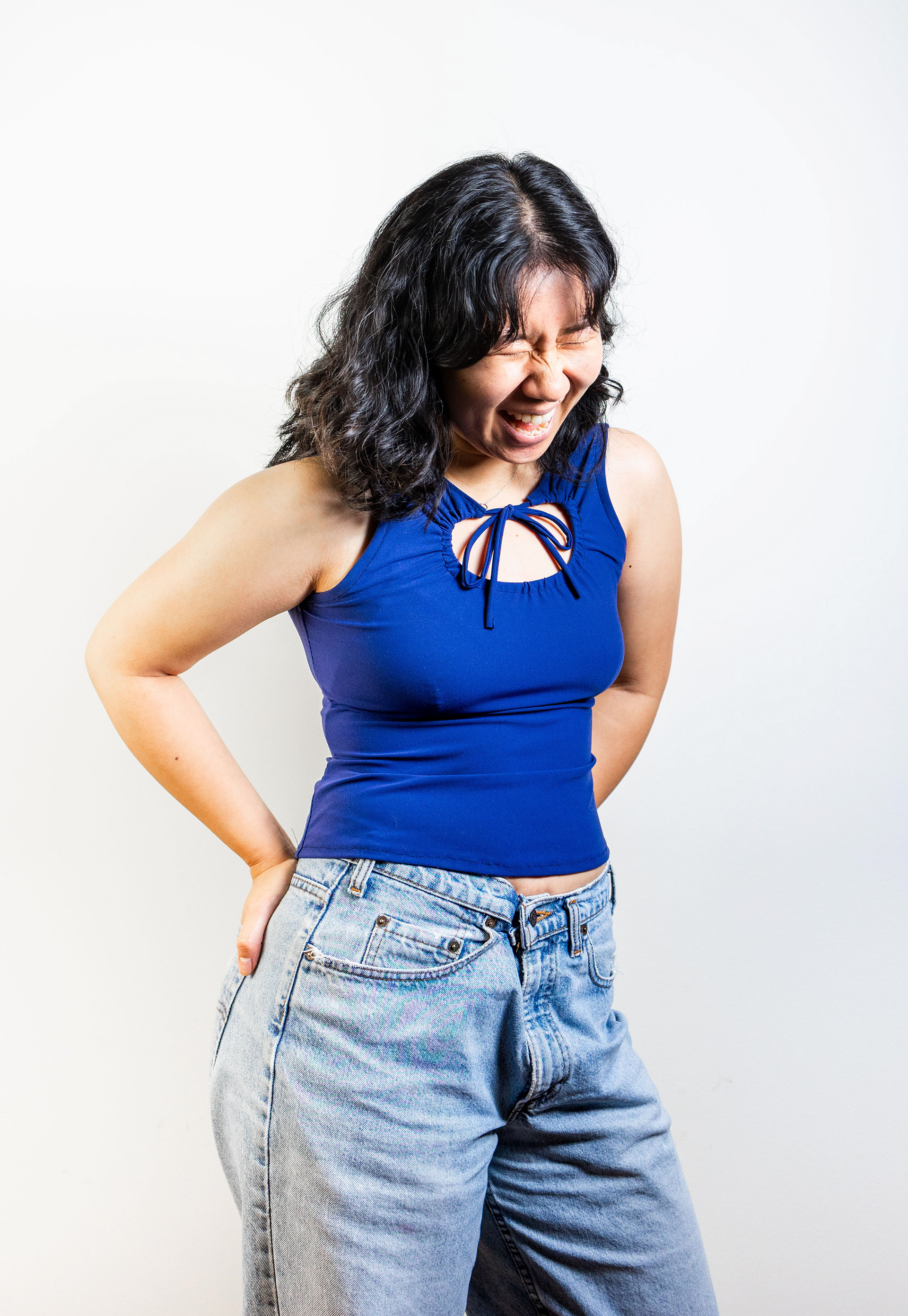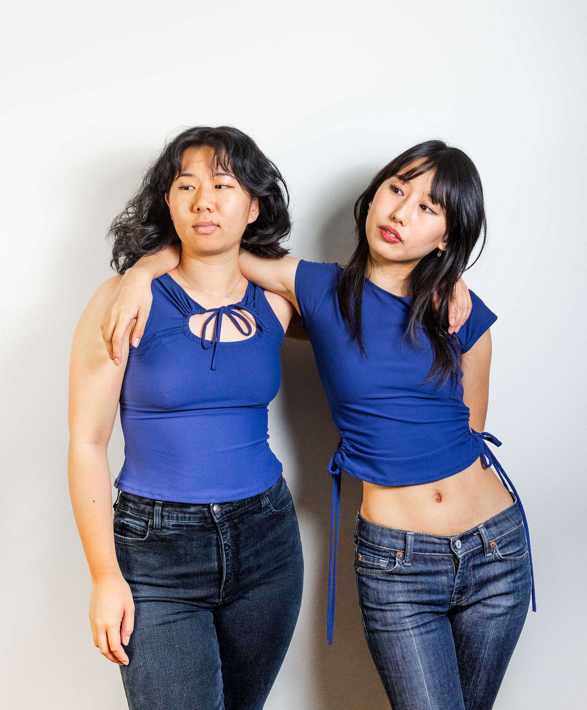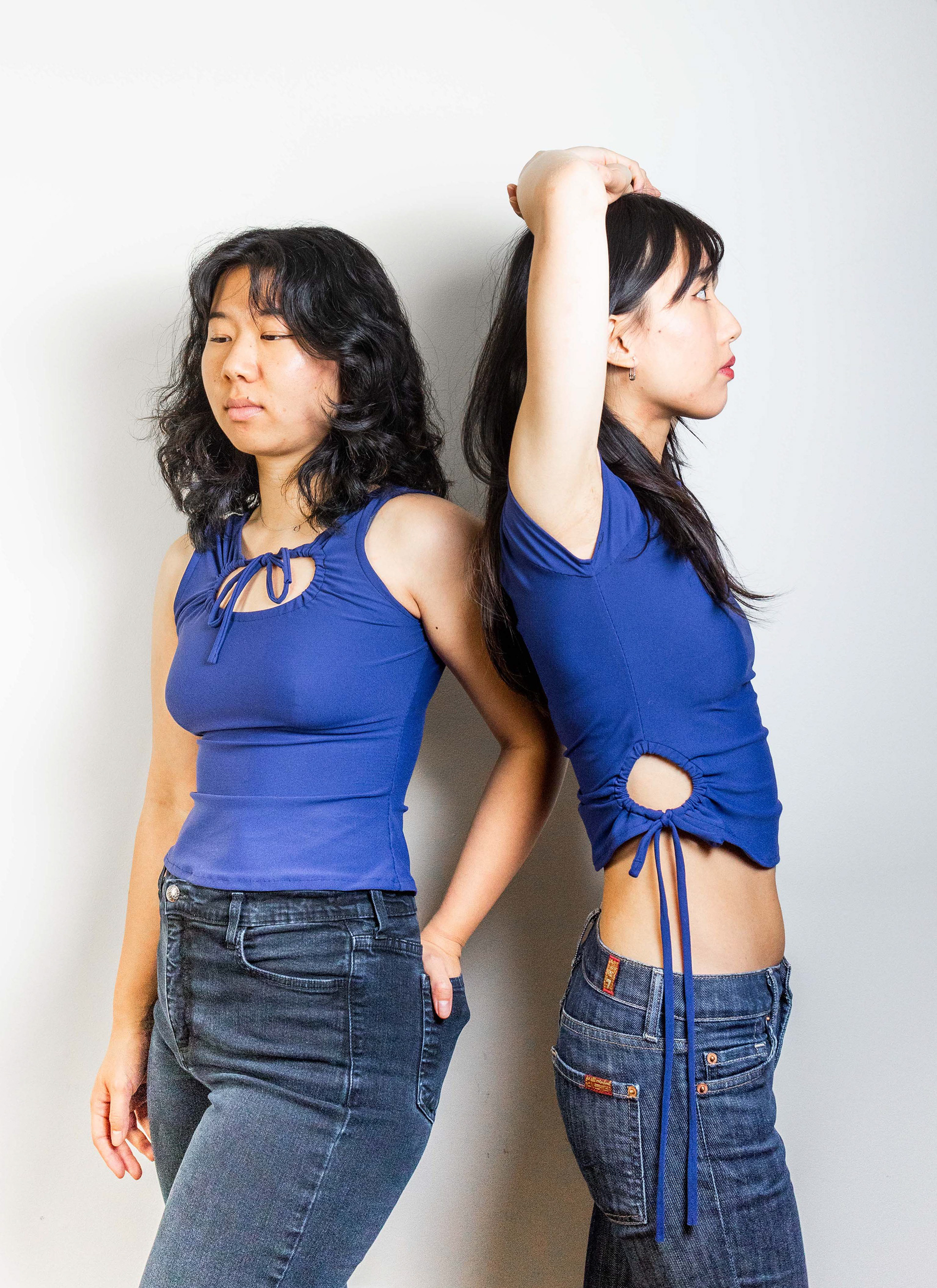 Using a synthetic stretch fabric, I sketched and drafted simple shirts with drawstring and cutout components.